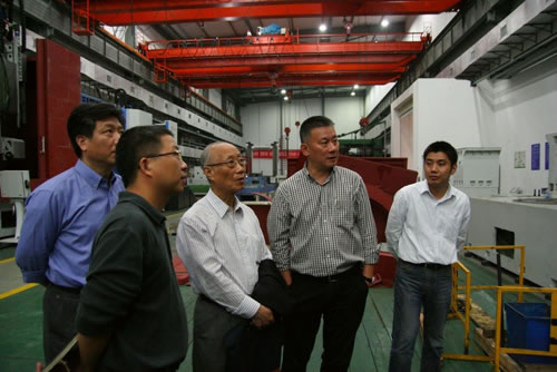 圖爲中國(guo)機械工業聯(lián)合會特别顧(gù)問朱森第(中(zhong))在公司領導(dǎo)陪同下視察(chá)裝配一車間(jiān)
