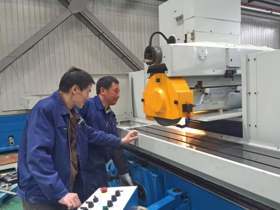 操作(zuo)工和檢驗員正(zheng)在驗收出口機(ji)床M7150*16/HZ