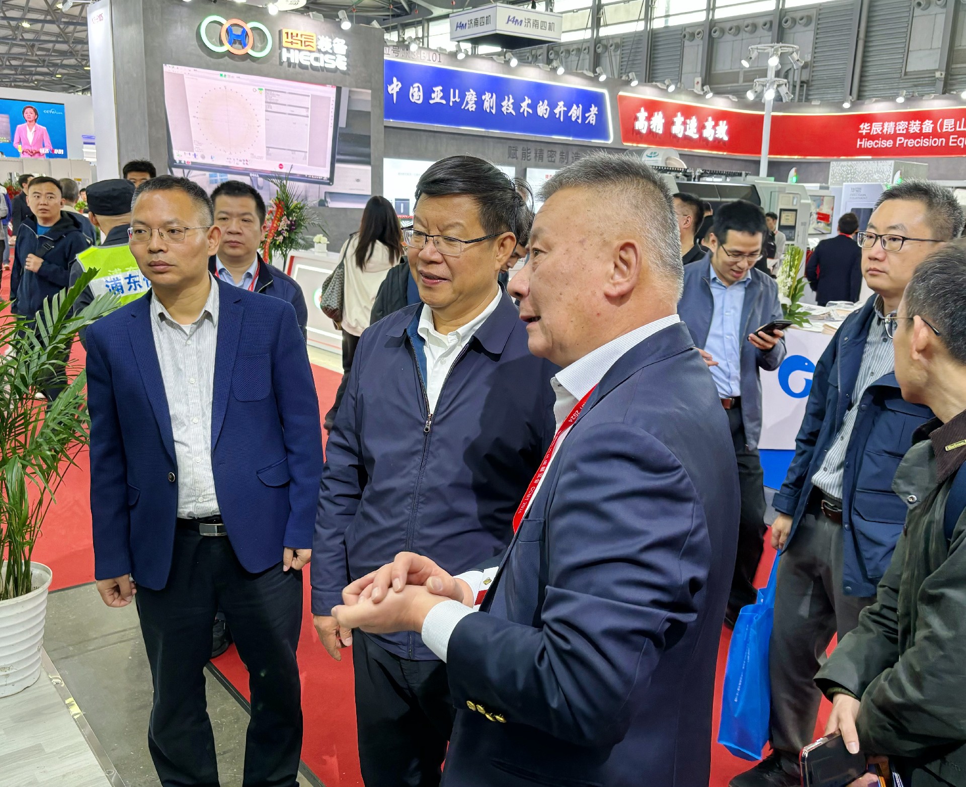 4 月 日(rì)上午,國家工(gōng)信部裝備一(yi)司通用處處(chù)長唐軍一行(hang)來到㊙️杭❓機股(gu)份展台考察(cha)指導,唐軍處(chu)長在進一步(bu)了解杭機本(ben)次展品後,表(biao)達了認可和(he)高度關注,他(tā)表示要聚焦(jiao)🔴主業,加大産(chan)品研發力度(dù),以科技研發(fā)展帶動♻️企業(yè)發展。