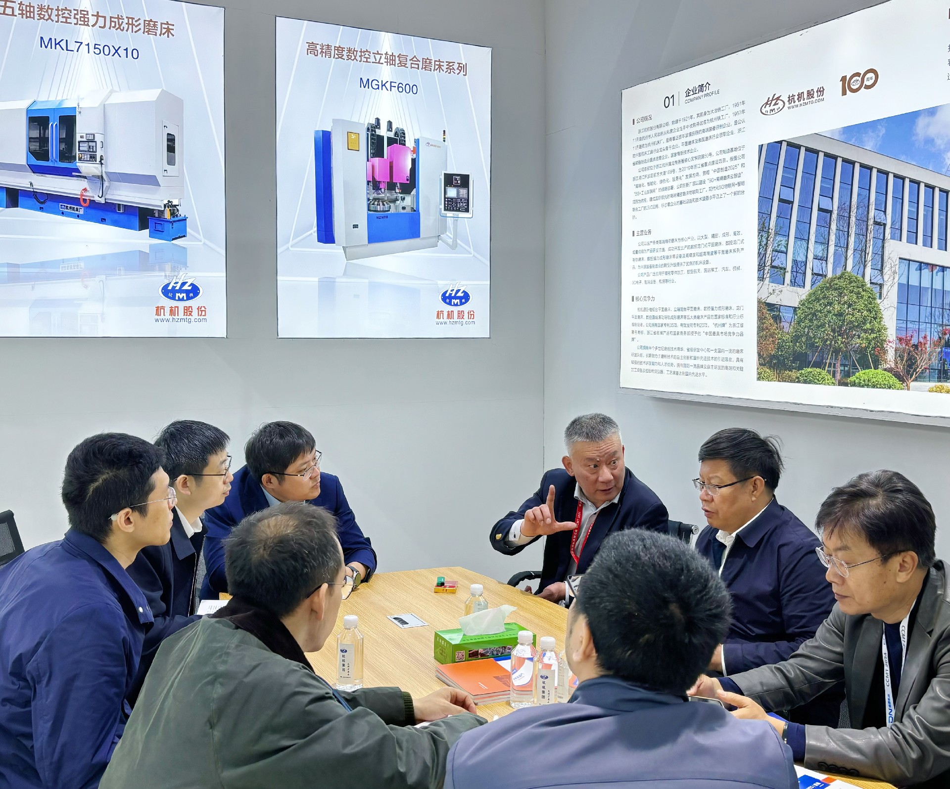 4 月(yuè) 号上午(wu),中國機械科(kē)學研究總院(yuan)董事長王德(de)成帶⛹🏻♀️領集團(tuán)有關部門領(ling)導到訪杭機(jī)展台,并與杭(háng)機股份副董(dǒng)事長孫益民(min)🈲、總經☁️理金正(zheng)鋼等進行深(shen)入交流。