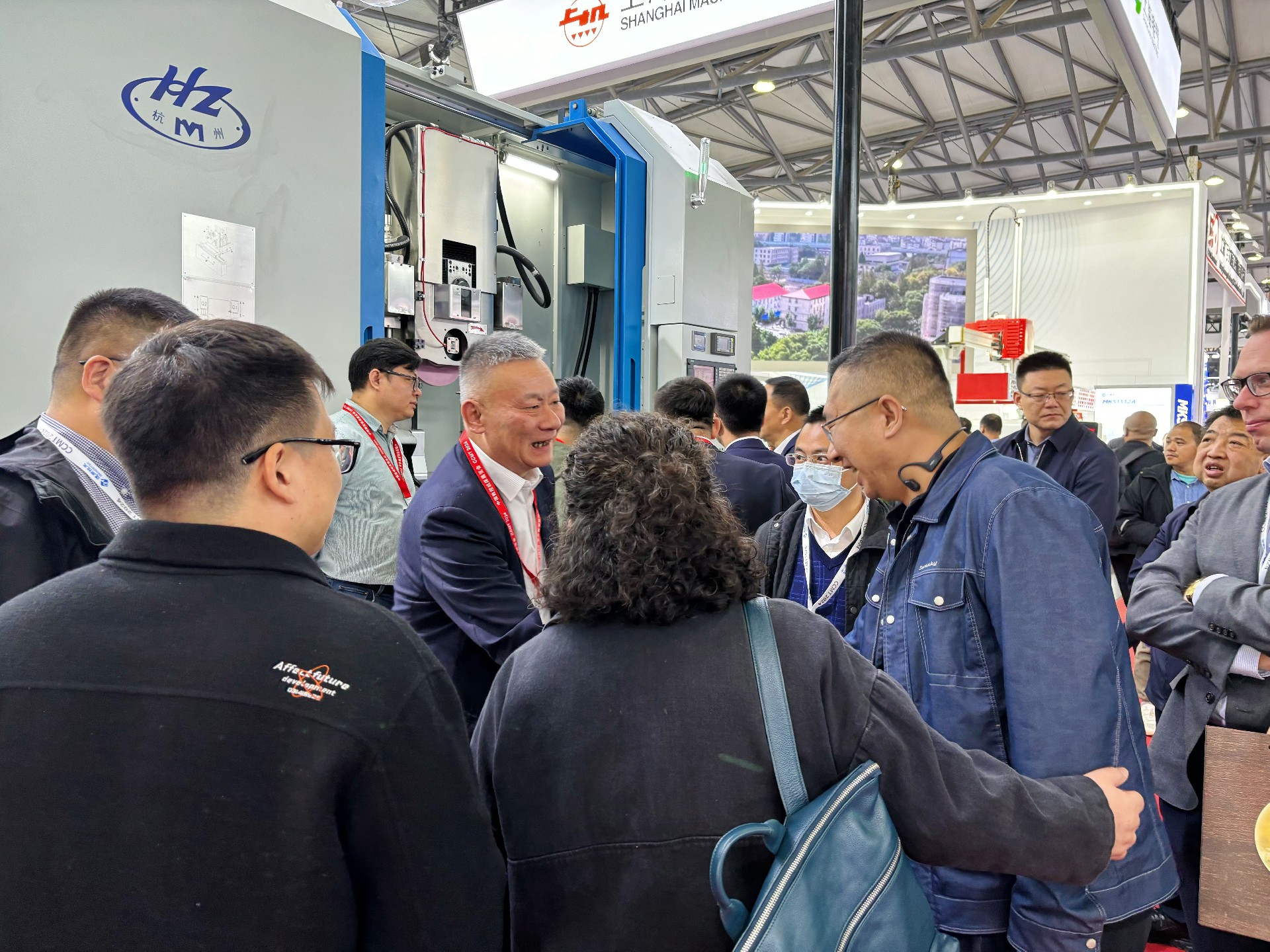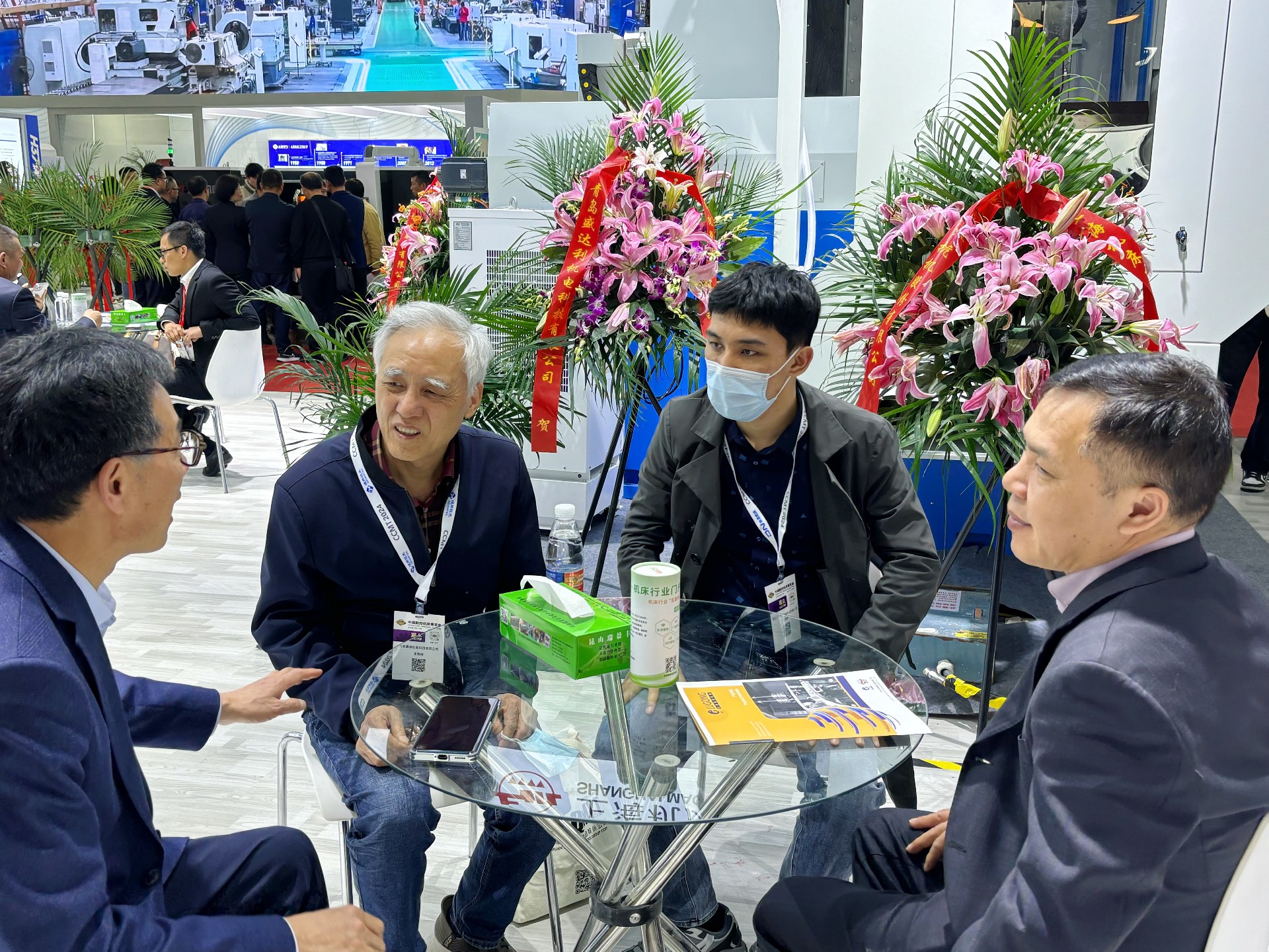 4 月 9 日上午,北一(yī)大隈總經理(li)北河勝義、北(bei)一大隈副總(zong)經理🐇李金勇(yǒng)到訪杭機股(gǔ)份展台,與杭(háng)機股份副董(dǒng)事長孫益🙇🏻民(mín),總經理金正(zheng)鋼,常務副總(zong)經理孫冬平(ping)交流探讨。